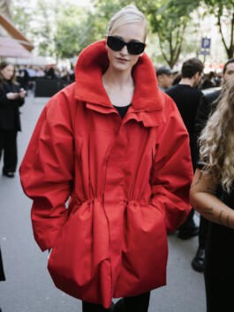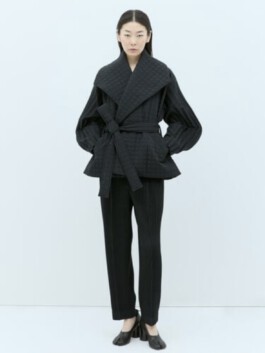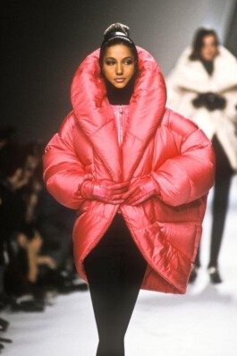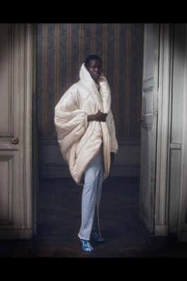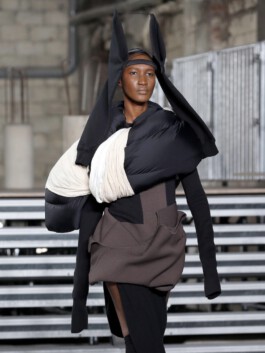 Das Kleidungsstück arbeitet mit einem Übermaß an Volumen, Gewicht und Isolation als szenografischer Strategie. Der Körper wird nicht betont, sondern verschoben. Arbeit wird nicht durch Transparenz sichtbar gemacht, sondern durch materielle Dichte und Proportion erfahrbar. Unsichtbarkeit erscheint hier nicht als Zufall, sondern als strukturelle Bedingung von Mode.
